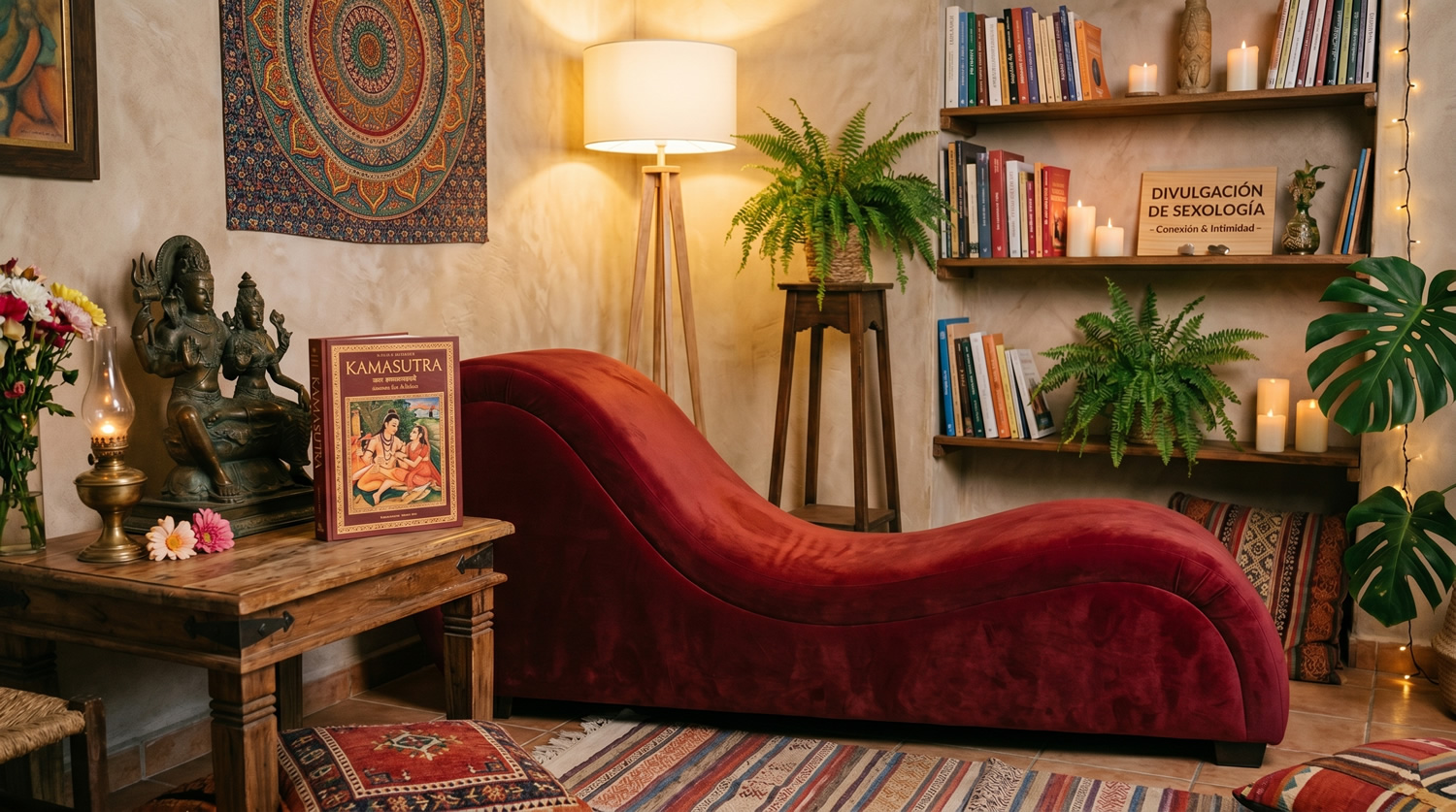 No, en absoluto. Es un mueble que facilita la exploración y suma comodidad, pero ni el Kamasutra original ni el Tantra requieren mobiliario especial. Vatsyayana no menciona ningún sillón. Los textos tántricos tampoco. Solo hacen falta cuerpos, presencia y comunicación. El sillón es una ayuda muy práctica si tenéis molestias articulares, si os gusta probar posturas variadas sin acabar agotados o si simplemente queréis sumar un elemento nuevo. Pero la magia no está en el mueble. Está en cómo os miráis, cómo respiráis y cómo os habláis cuando estáis juntos.